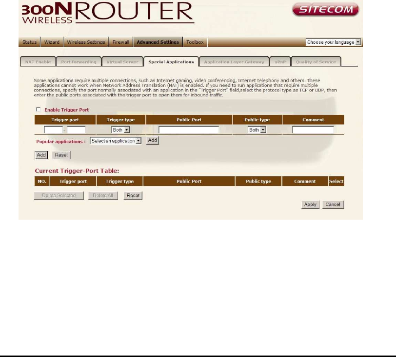 Enable Trigger Port Enable the Special Application function.